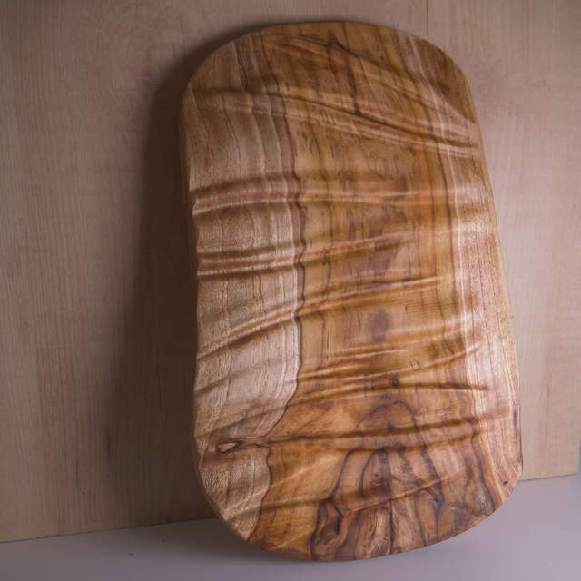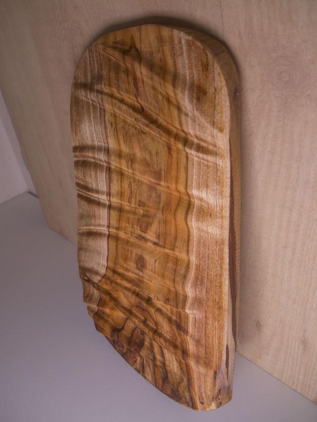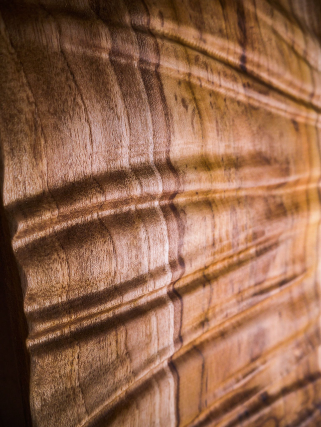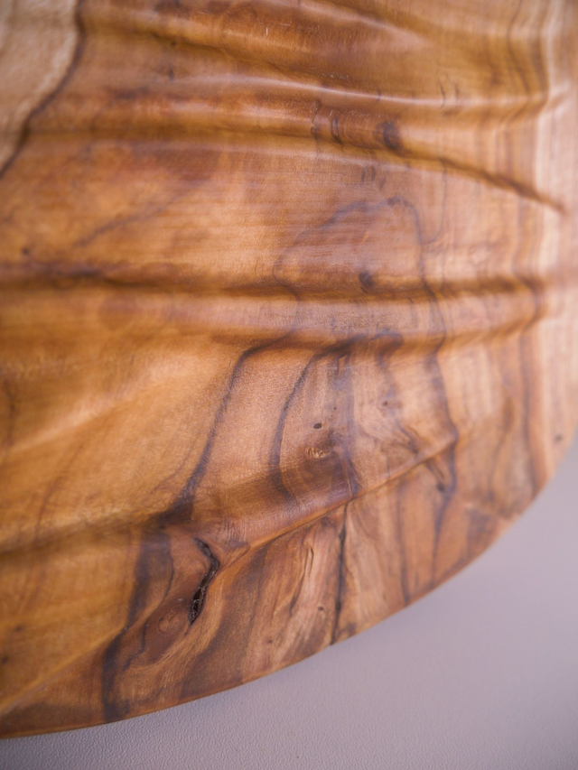 Une pièce de teck sculptée de vagues rappelant les plis d'un tissus.