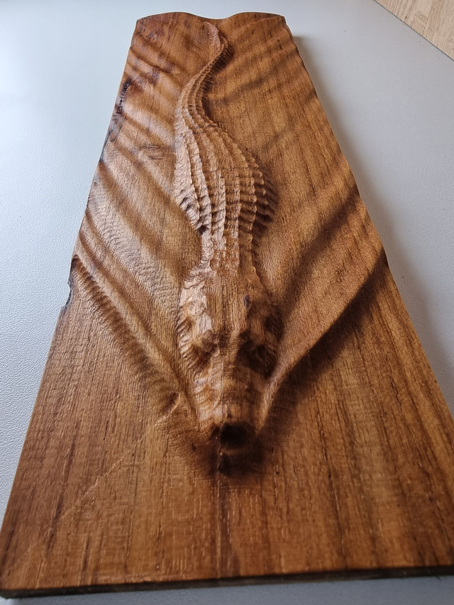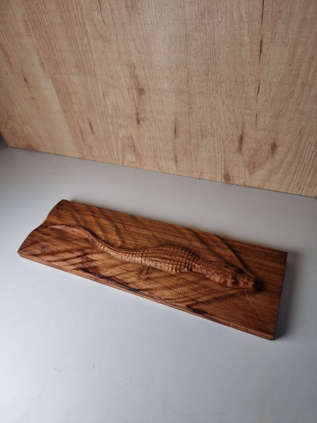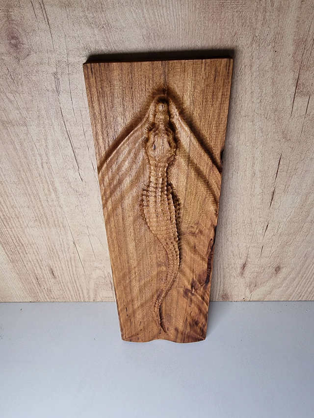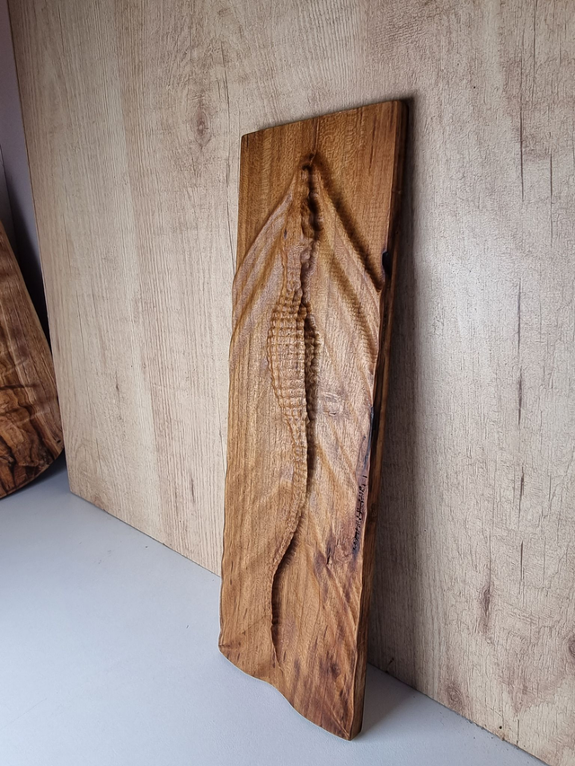 Sublimez votre espace de vie avec cette splendide planche décorative en teck finement sculptée, représentant un majestueux crocodile émergeant des eaux tumultueuses. La combinaison exquise du bois de teck naturellement durable et de l'art artisanal traditionnel confère à cette pièce une essence à la fois sauvage et élégante. Plongez dans une esthétique exotique et ajoutez une touche de mystère à votre intérieur grâce à cette pièce unique et captivante.